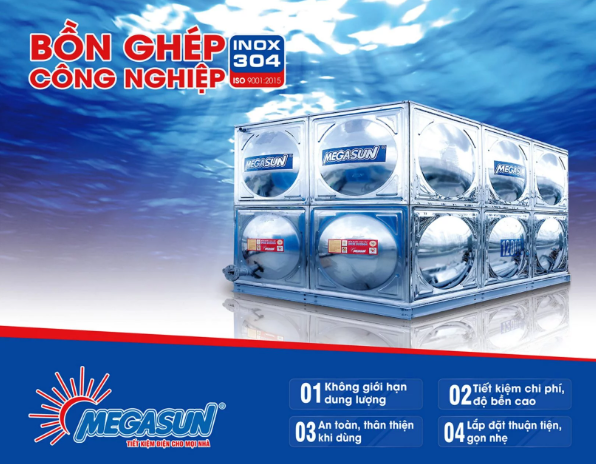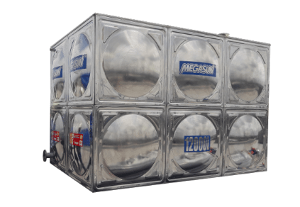Bồn chứa nước lắp ghép công nghiệp Megasun dùng vật liệu inox cao cấp được sử dụng rộng rãi trong các công trình xây dựng dân dụng, công nghiệp, bể chứa chuyên dụng. Đảm bảo tốt nhất chất lượng nguồn nước chưa, chống hình thành tảo, rong rêu trong bể.