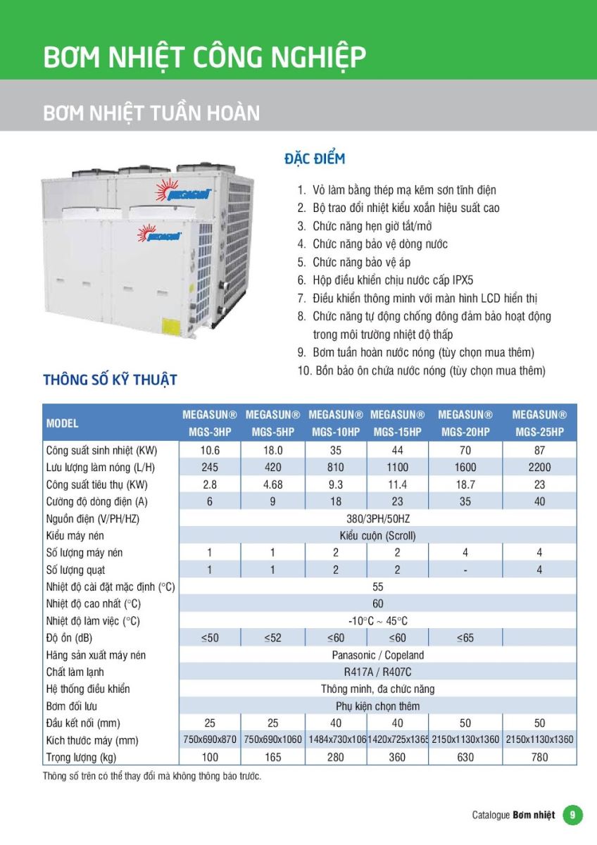 Catalogue bơm nhiệt MEGASUN 2015